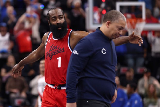 就从快船这四场比赛说起。揭幕战面对爵士,快船爆冷21分惨败,比赛中一度落后爵士37分,那场比赛快船第一节就崩了,全队上下都有些消极。此后虽然连赢太阳和开拓者,但面对勇士时,快船又是无奈19分惨败,一场比赛下来,快船全队只拿到79分!主帅泰伦卢先坐不住了,表示哈登上半场主动要求下场,这打破了球队节奏,他的理由是上半场消耗太大。又说球队需要比尔,比尔可以持球可以创造进攻。最关键的是,泰伦卢把输球责任甩锅队员,认为开局投篮不中后,大家失去信任,出现很多一次传球后的出手。